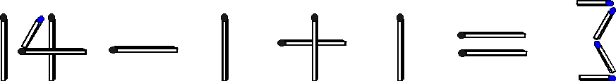 著名數學家哈代 (Hardy, 1877-1947) 喜歡用火柴擺出一些算式,擬造趣題。他用火柴砌成這道算題,顯然不正確: (14 - 1 + 1 = 3) 請你只移動一根火柴 (但不能減少火柴數目),使這算式成立。